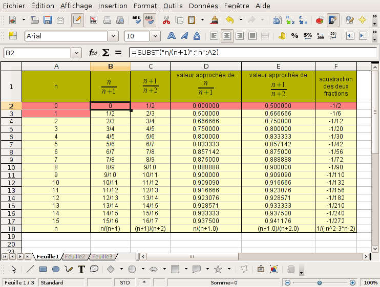 C2 contient =subst("(n+1)/(n+2)" ;"n" ;A2)