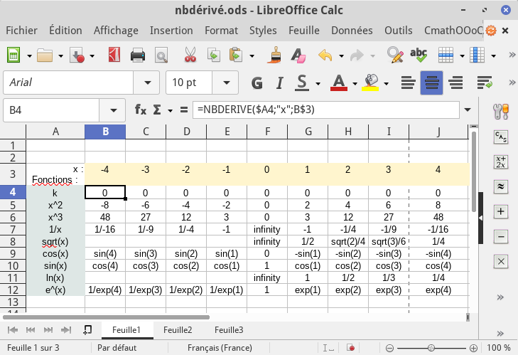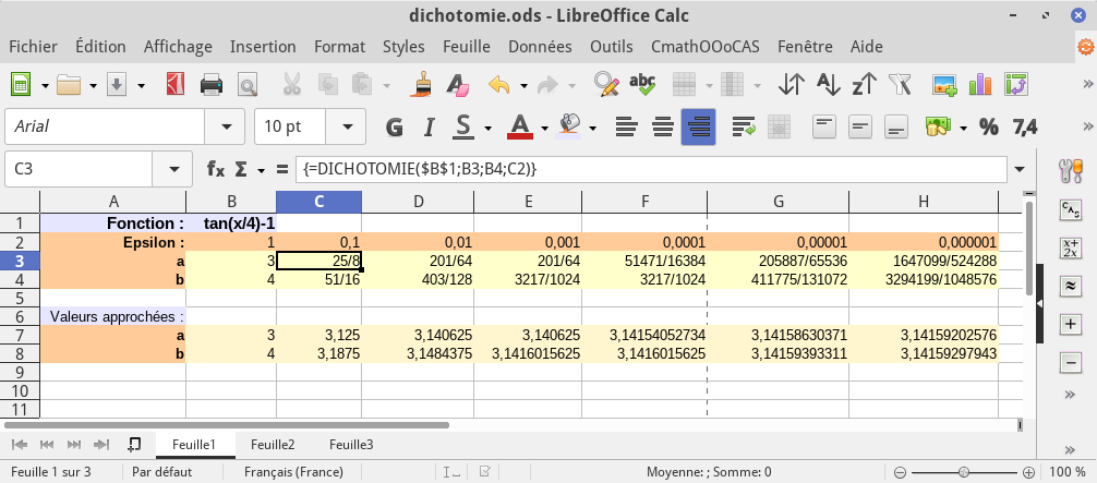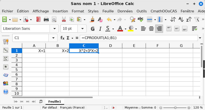 Voici une utilisation simple de CmathOOoCAS :