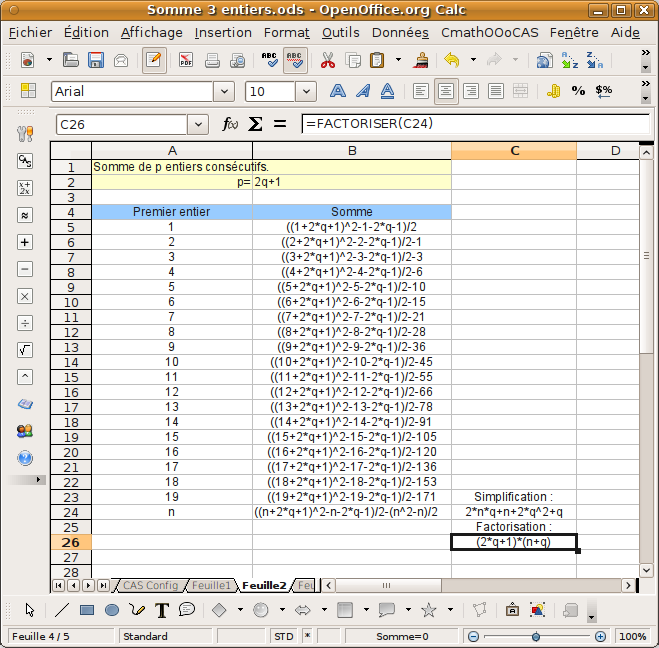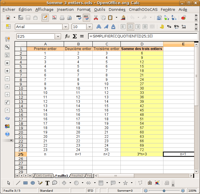 Accueil > CmathOOoCAS > Activités utilisant CmathOOoCAS > Somme de trois entiers consécutifs (collège)