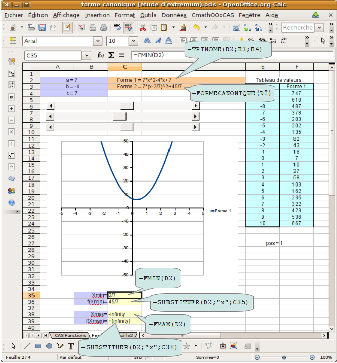 formecanonique, fmin et fmax sont des fonctions de CmathOOoCAS.